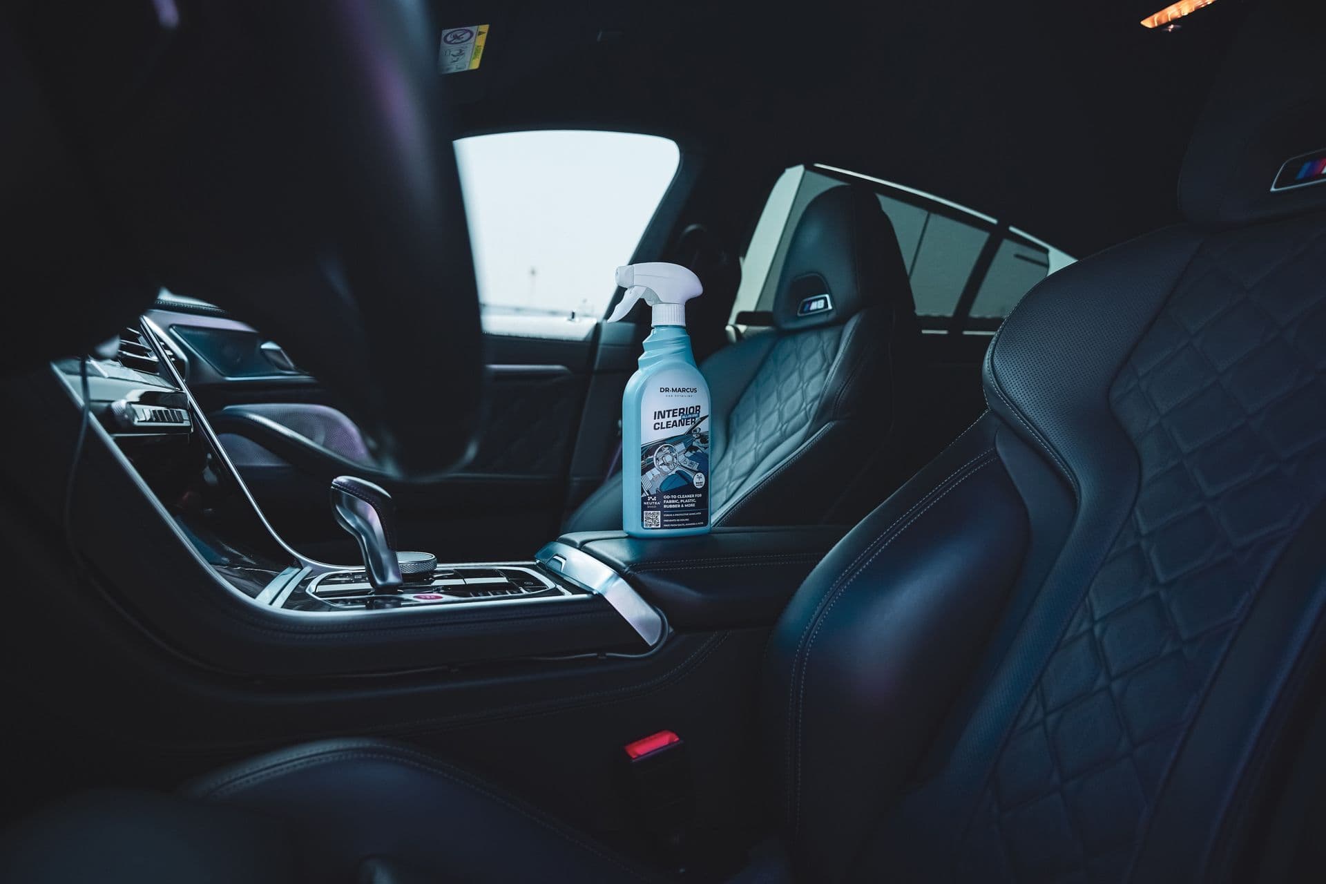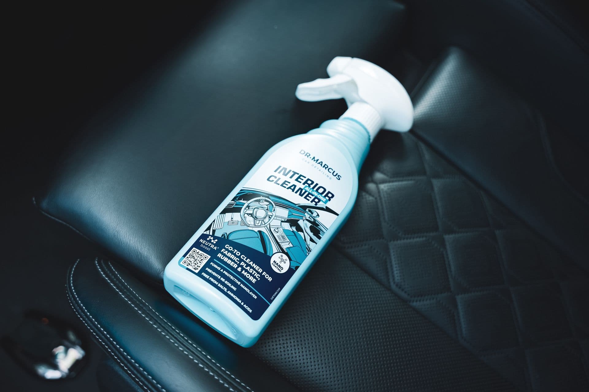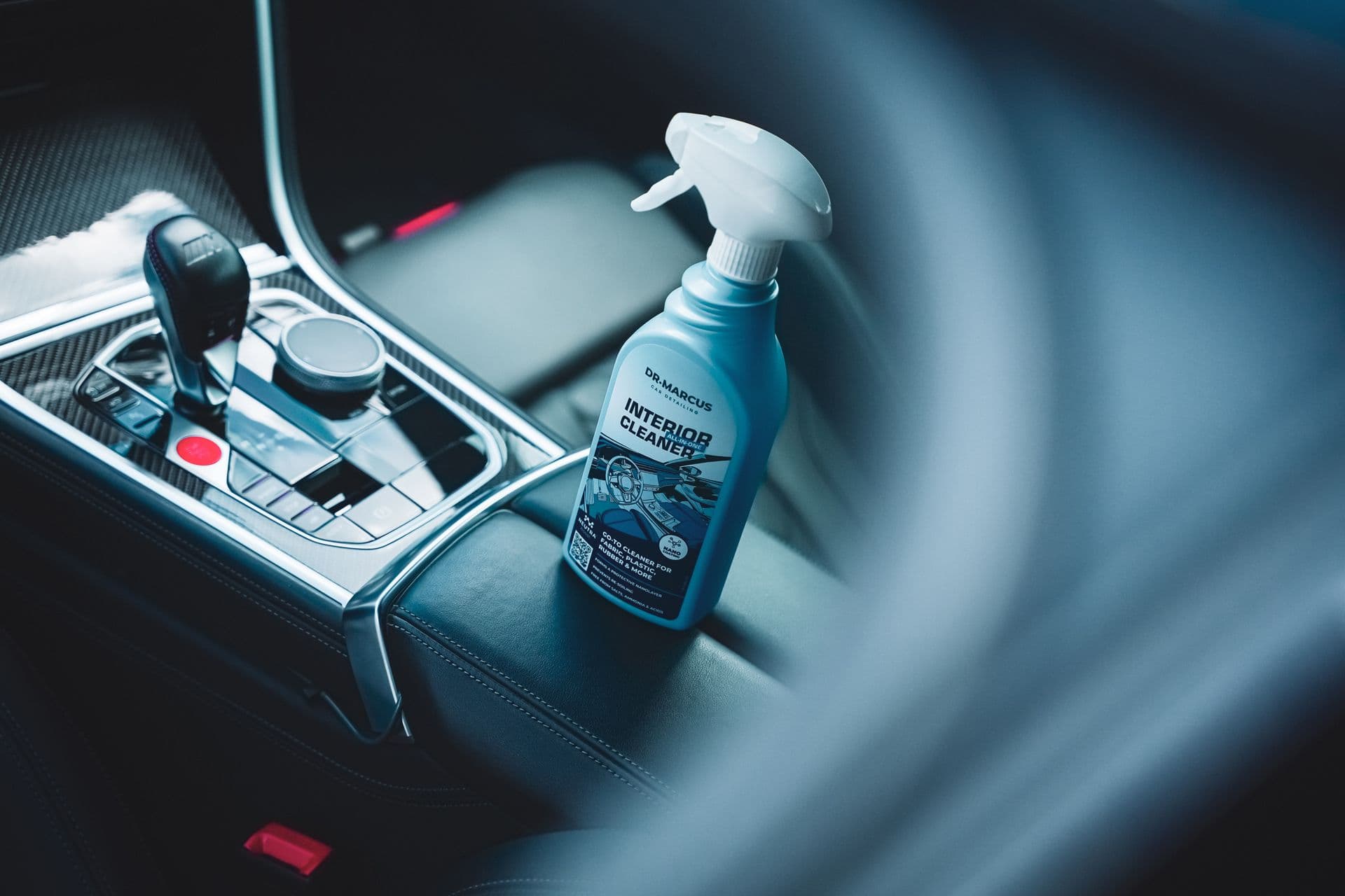 Solution: All-In-One Interior Cleaner - a ready-to-use, safe, pH-neutral cleaner for comprehensive care of vehicle interiors. Gentle surfactants in the cleaning formula and high wettability make it easy to strip dirt and degrease surfaces. The light foam is ideal for removing stains on fabrics: it penetrates the fibers, then "closes" them and envelops them with a polymeric micro-coating, which protects against re-soiling.