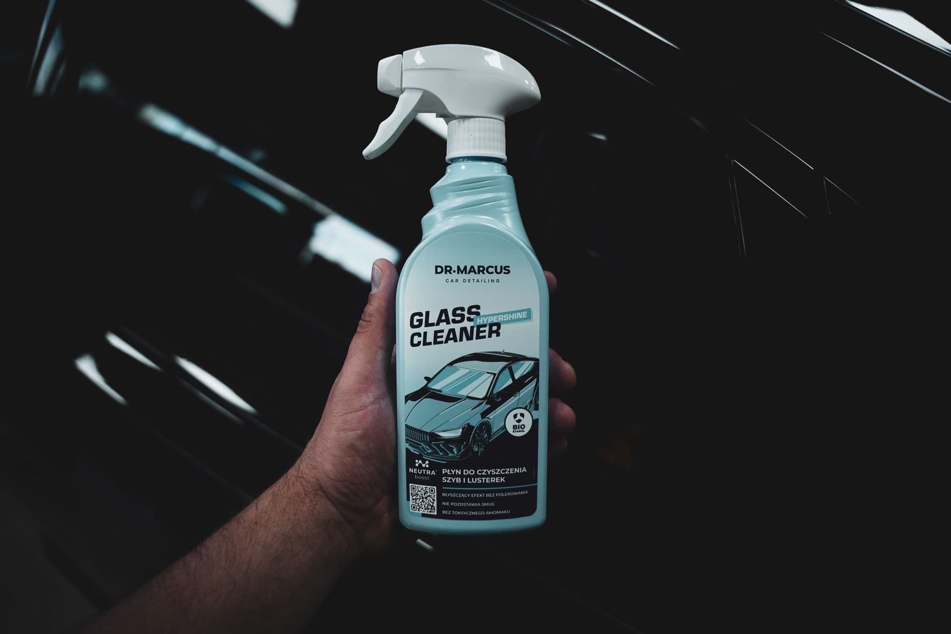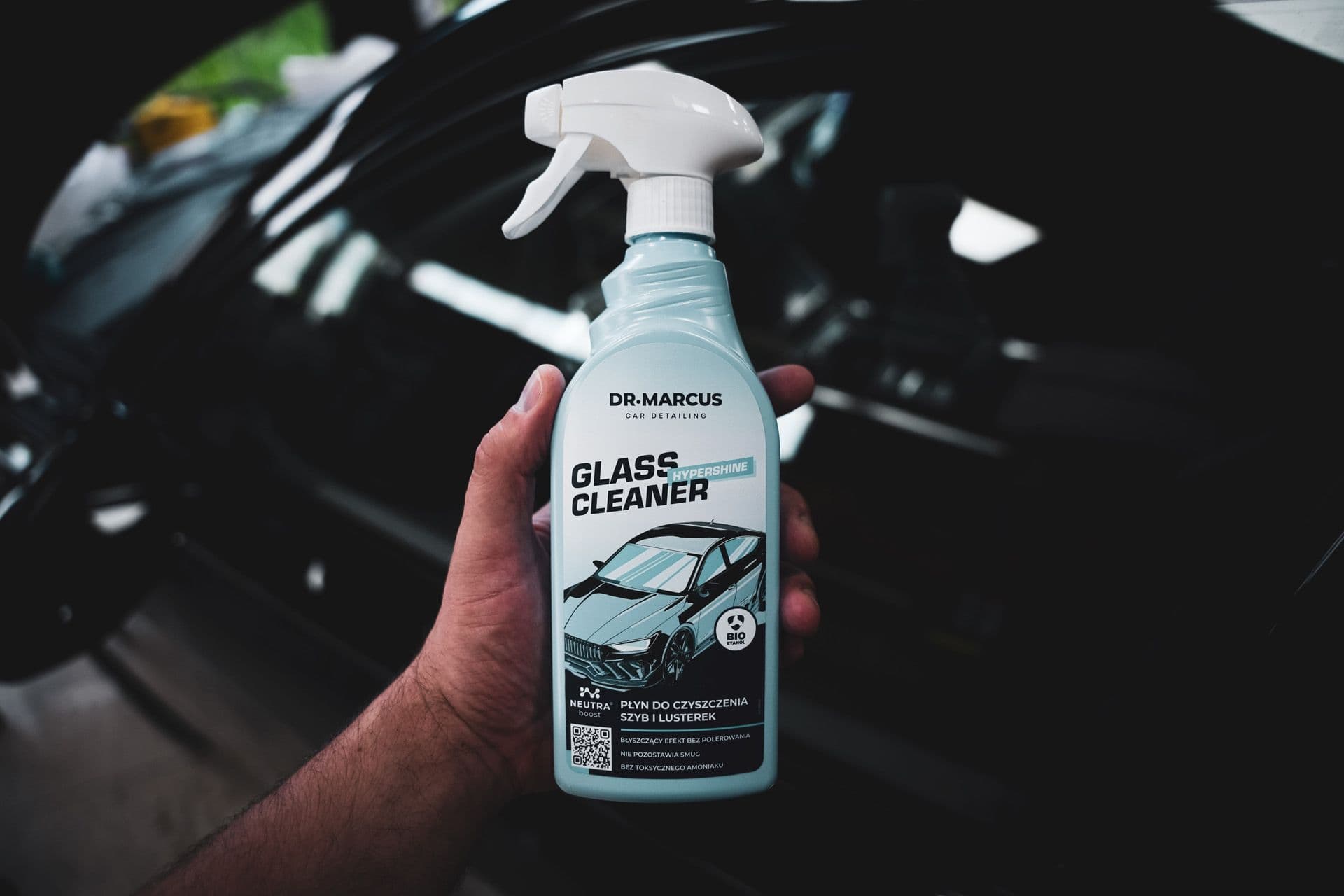 Solution: Hypershine Glass Cleaner effective glass, headlight and mirror cleaner, based on bioethanol. Concentrated formula removes even stubborn dirt and thoroughly dissolves greasy deposits, which reduces window fogging. Does not leave streaks and reflections. Provides perfect visibility. Ammonia-free product - safe for car body, gaskets and plastics.