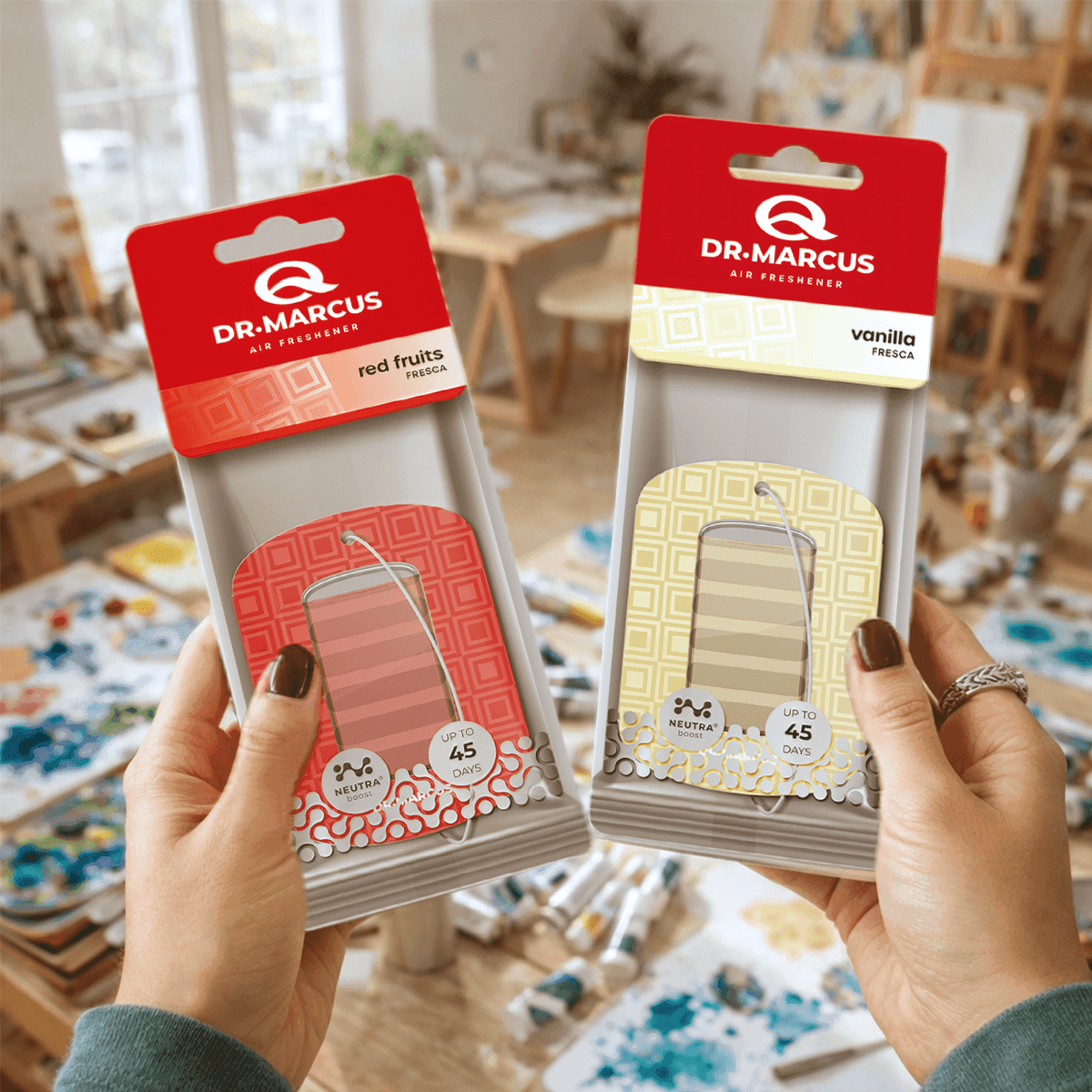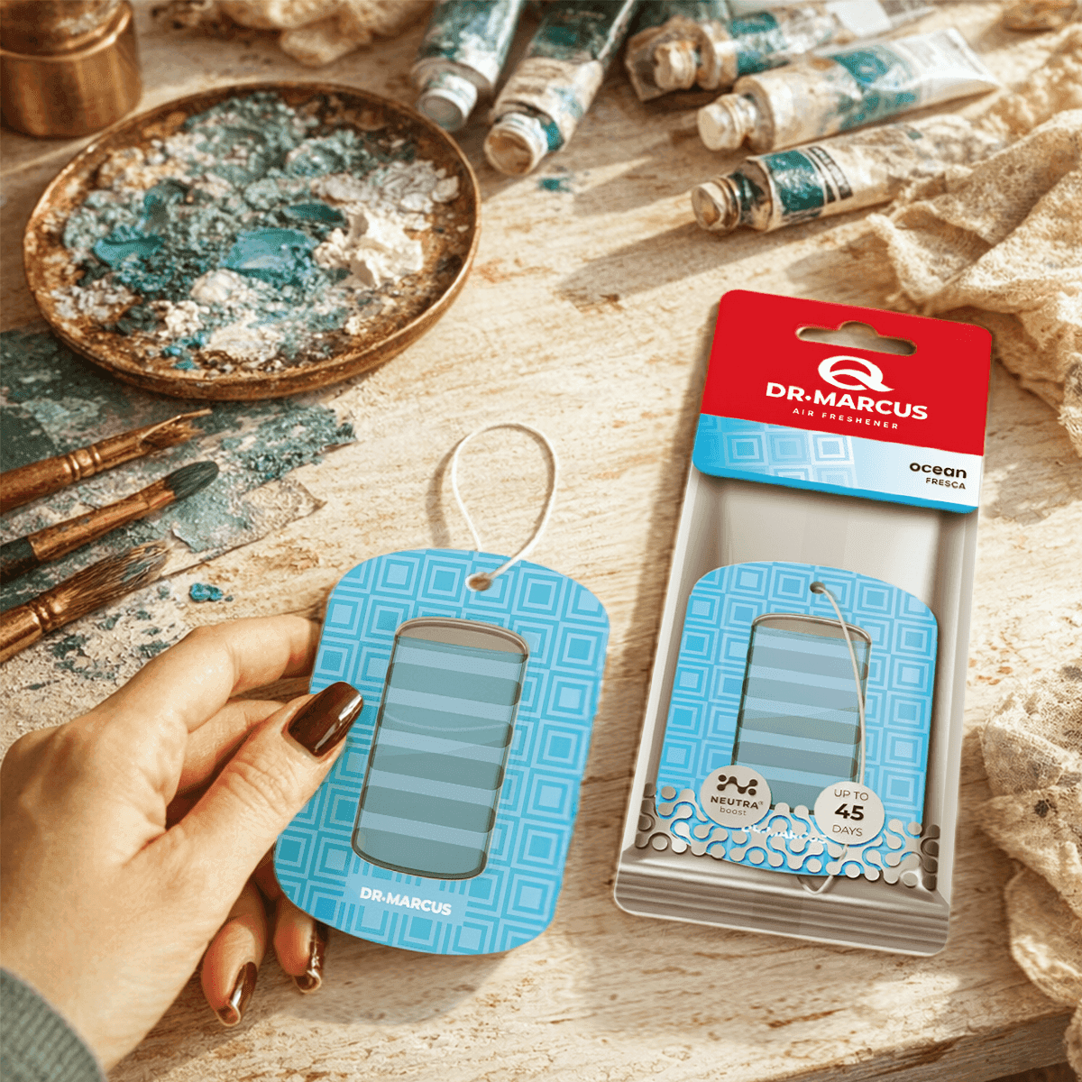 Fresca is an air freshener in the form of a modern membrane. It fills the interior with a pleasant fragrance for up to 45 days. Thanks to the innovative formula, you decide when to activate the fragrance - just tear off the protective film.